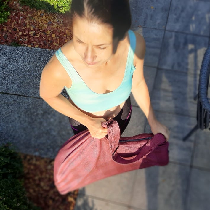 Wir machen seit Jahren wöchentlich Yoga. Um Matte, Handtuch, Trinkflasche und weitere kleinere Accessoires mit uns zu führen, hatten wir immer getrennten Behältnisse. Meist die Matte zusammengebunden mit zwei Stripes und einen zusätzlichen kleinen Rucksack für die anderen Dinge. Die Matte war einfach zu groß um sie in unsere Lieblingstasche hinein zu bekommen. So waren es immer 2 Gepäckstücke. Bald kam der Wunsch nach einer Tasche für alles in einer auf.
